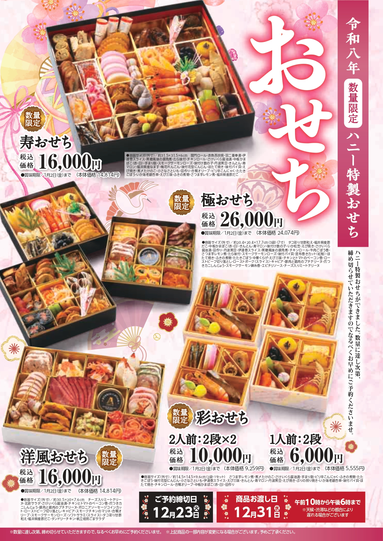 ハニー特製おせちは、いかがでしょうか・・・