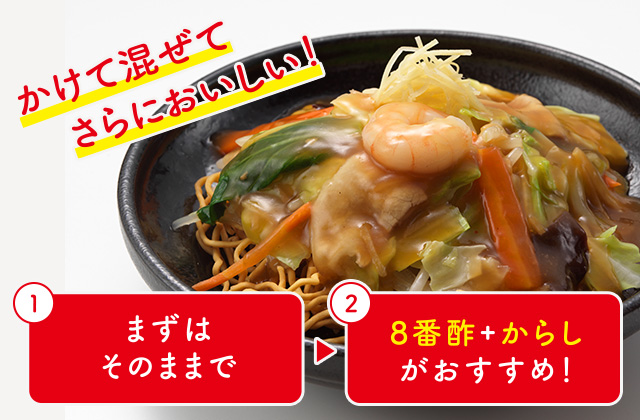 召し上がる際に、麺に五目あんを掛けていただくことで、