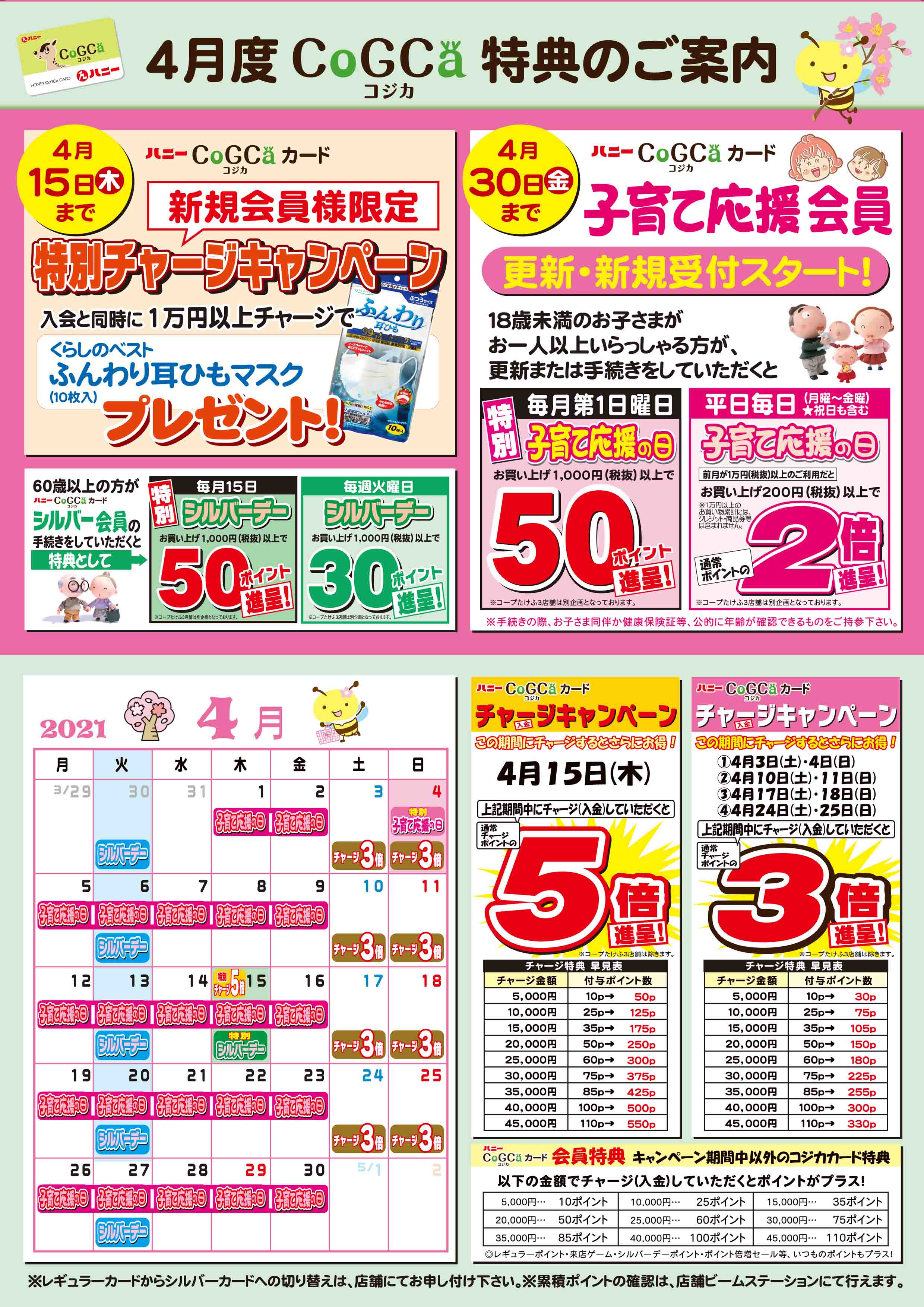 【ハニー】4月もハニーコジカカードはお得が満載!!